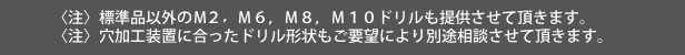 テーパー穴加工用の専用総方形ドリルは、鉄鋼・合金用と樹脂用の2種類を用意し、各々目的に合わせ、